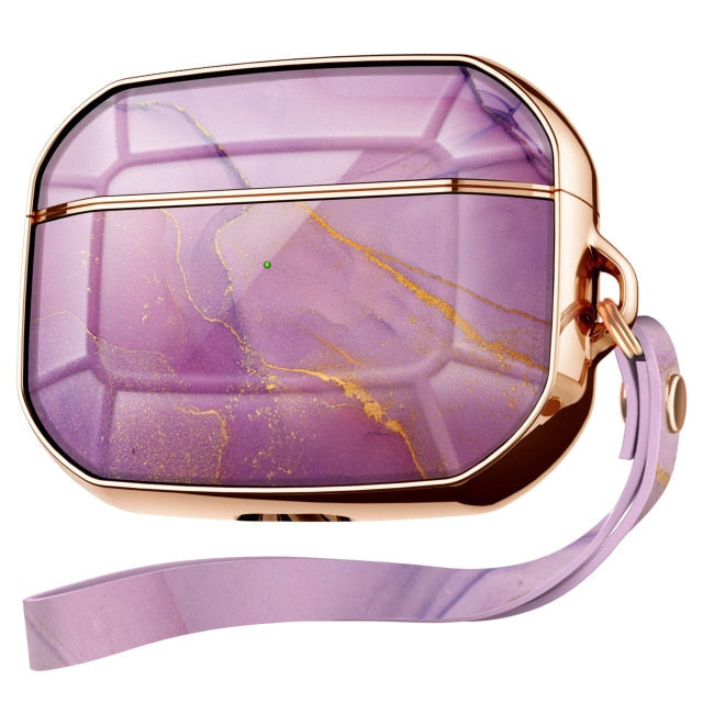 ✨ AirPods Pro / AirPods 2/1 Luxury Marble Case – Edición Electroplated con Lanyard | Protección Premium & Estilo Moderno